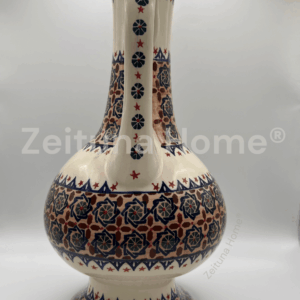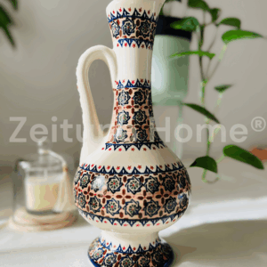This beautifully crafted Slimania Carafe, originating from the heart of Setif, Algeria, is a vibrant piece that adds both color and elegance to your table.